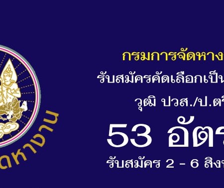 กรมการจัดหางาน รับสมัครคัดเลือกบุคคลเป็นลูกจ้างชั่วคราว 53 อัตรา รับสมัครทางอินเทอร์เน็ตตั้งแต่วันที่ 2 – 6 สิงหาคม 2564