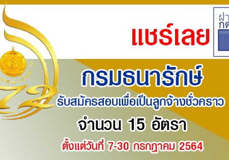 กรมธนารักษ์ รับสมัครสอบเพื่อเป็นลูกจ้างชั่วคราว 15 อัตรา รับทางอินเทอร์เน็ต ตั้งแต่วันที่ 7-30 กรกฎาคม 2564