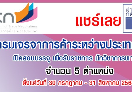 กรมเจรจาการค้าระหว่างประเทศ รับสมัครสอบเป็นพนักงานราชการทั่วไป 6 อัตรา รับสมัครทางอินเทอรเน็ตตั้งแต่วันที่ 30 กรกฎาคม – 31 สิงหาคม 2564