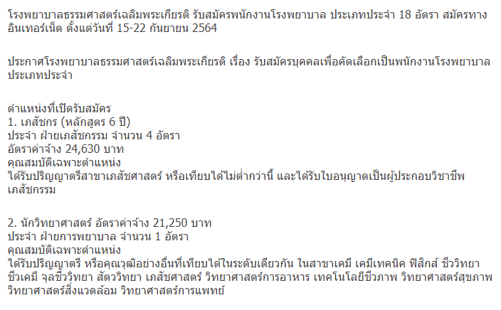 สมัครด้วยตนเอง หรือสมัครทางอินเทอร์เน็ต ตั้งแต่วันที่ 15 กันยายน 2564 ถึงวันที่ 22 กันยายน 2564 ตลอด 24 ชั่วโมง ที่เว็บไซต์ http://www.hospital.tu.ac.thสอบถามรายละเอียดได้ที่ โทร. 0-2926-9368-69
