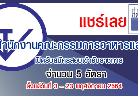 สำนักงานคณะกรรมการอาหารและยา เปิดรับสมัครสอบเข้ารับราชการ 5 อัตรา รับสมัครทางอินเทอร์เน็ต ตั้งแต่วันที่ 3 – 23 พฤศจิกายน 2564