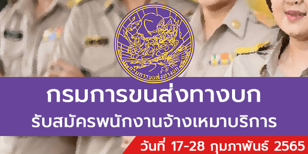 กรมการขนส่งทางบก รับสมัครพนักงานจ้างเหมาบริการ 2 อัตรา รับสมัครด้วยตนเอง ตั้งแต่วันที่ 17-28 กุมภาพันธ์ 2565