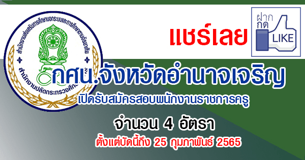 กศน.จังหวัดอำนาจเจริญ เปิดรับสมัครสอบพนักงานราชการครู 4 อัตรา รับสมัครด้วยตนเอง ตั้งแต่บัดนี้ถึง 25 กุมภาพันธ์ 2565