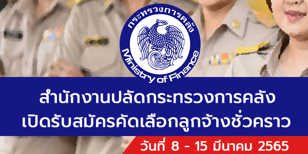 สำนักงานปลัดกระทรวงการคลัง รับสมัครสอบเป็นลูกจ้างชั่วคราวรายเดือน 11 อัตรา รับสมัครทางไปรษณีย์ ตั้งแต่งวันที่ 8 – 15 มีนาคม 2565