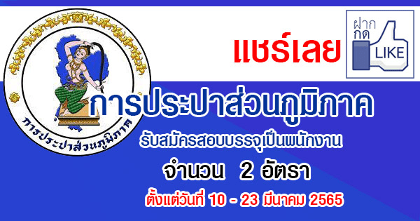 การประปาส่วนภูมิภาค รับสมัครสอบบรรจุเป็นพนักงาน 2 อัตรา รับสมัครทาง E-mail ตั้งแต่วันที่ 10 – 23 มีนาคม 2565