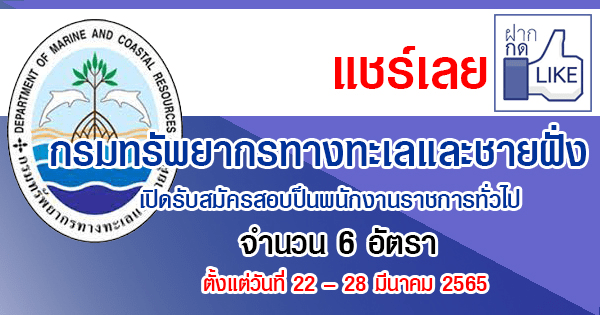กรมทรัพยากรทางทะเลและชายฝั่ง เปิดรับสมัครสอบป็นพนักงานราชการทั่วไป 6 อัตรา รับสมัครทางอินเทอร์เน็ต ตั้งแต่วันที่ 22 – 28 มีนาคม 2565