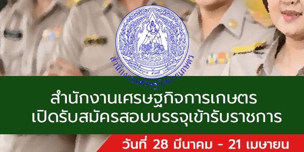สำนักงานเศรษฐกิจการเกษตร เปิดรับสมัครสอบบรรจุเข้ารับราชการ 5 อัตรา รับสมัครทางอินเทอร์เน็ต 28 มีนาคม – 21 เมษายน 2565