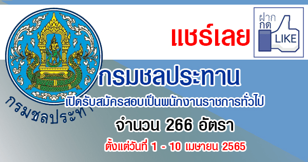 กรมชลประทาน เปิดรับสมัครสอบเป็นพนักงานราชการทั่วไป 266 อัตรา รับสมัครทางอินเทอร์เน็ต ตั้งแต่วันที่ 1 – 10 เมษายน 2565