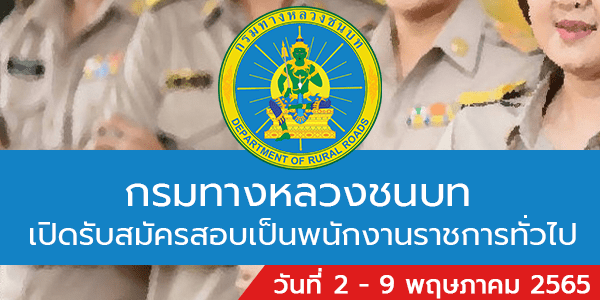 กรมทางหลวงชนบท เปิดรับสมัครสอบเป็นพนักงานราชการทั่วไป 34 อัตรา รับสมัครทางอินเทอร์เน็ต ตั้งแต่วันที่ 2 – 9 พฤษภาคม 2565
