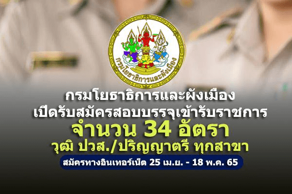 กรมโยธาธิการและผังเมือง เปิดรับสมัครสอบบรรจุเข้ารับราชการ 34 อัตรา รับสมัครทางอินเทอร์เน็ต ตั้งแต่วันที่ 25 เมษายน – 18 พฤษภาคม 2565