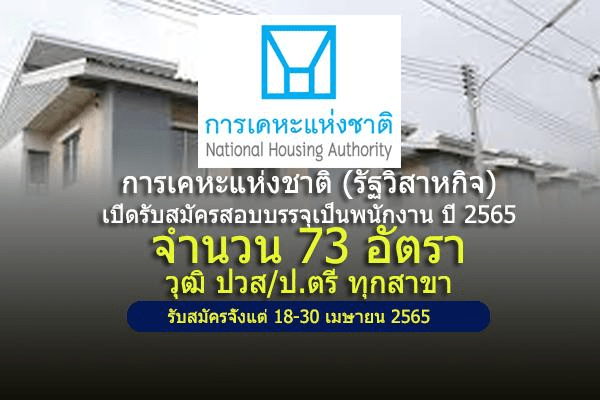 การเคหะแห่งชาติ เปิดรับสมัครสอบบรรจุพนักงาน 73 อัตรา สมัครทางอินเทอร์เน็ต ตั้งแต่วันที่ 18 – 30 เมษายน 2565