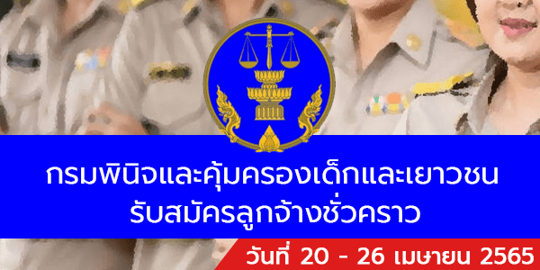 กรมพินิจและคุ้มครองเด็กและเยาวชน รับสมัครลูกจ้างชั่วคราว 5 อัตรา รับสมัครทางอินเทอร์เน็ต ตั้งแต่วันที่ 20-26 เมษายน 2565