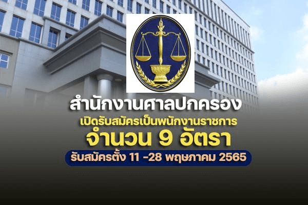 สำนักงานศาลปกครอง เปิดรับสมัครสอบเป็นพนักงานราชการ 9 อัตรา รับสมัครทางอินเทอร์เน็ต ตั้งแต่วันที่ 11 – 25 พฤษภาคม 2565