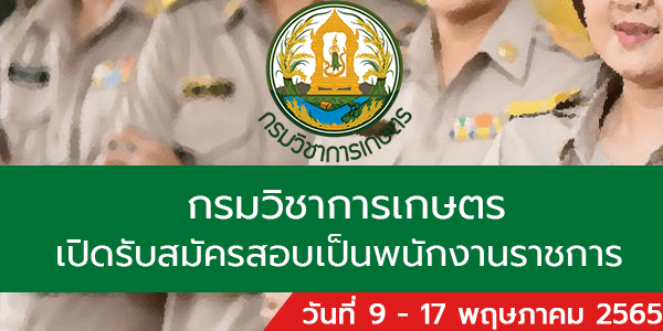 กรมวิชาการเกษตร เปิดรับสมัครสอบเป็นพนักงานราชการ 2 อัตรา รับสมัครด้วยตนเอง ตั้งแต่วันที่ 9 – 17 พฤษภาคม 2565