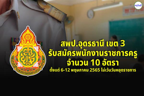สพป.อุดรธานี เขต 3 รับสมัครเป็นพนักงานราชการ(ตำแหน่ง ครูผู้สอน) 10 อัตรา รับสมัครด้วยตนเอง ตั้งแต่วันที่ 6-12 พฤษภาคม 2565