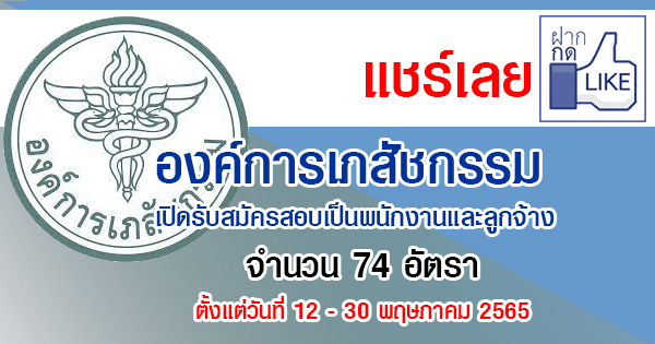 องค์การเภสัชกรรม เปิดรับสมัครสอบเป็นพนักงานและลูกจ้าง 74 อัตรา รับสมัครทางอินเทอร์เน็ต ตั้งแต่วันที่ 12 – 30 พฤษภาคม 2565