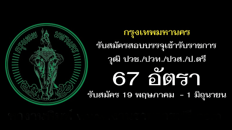 กทม. เปิดรับสมัครสอบบรรจุเข้ารับราชการ 67 อัตรา รับสมัครทางอินเทอร์เน็ต ตั้งแต่วันที่ 19 พฤษภาคม – 1 มิถุนายน 2565