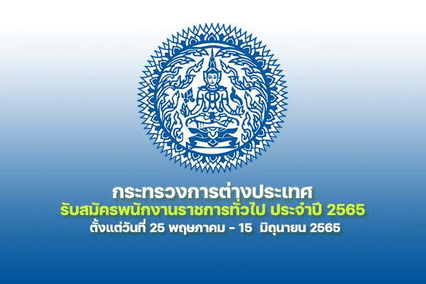 ประกาศกระทรวงการต่างประเทศ เรื่อง รับสมัครบุคคลเพื่อเลือกสรรเป็นพนักงานราชการทั่วไป ประจำปี 2565