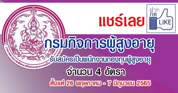 กรมกิจการผู้สูงอายุ รับสมัครเป็นพนักงานกองทุนผู้สูงอายุ 4 อัตรา รับสมัครไปรษณีย์ด่วนพิเศษ (EMS) ตั้งแต่ 26 พฤษภาคม – 7 มิถุนายน 2565