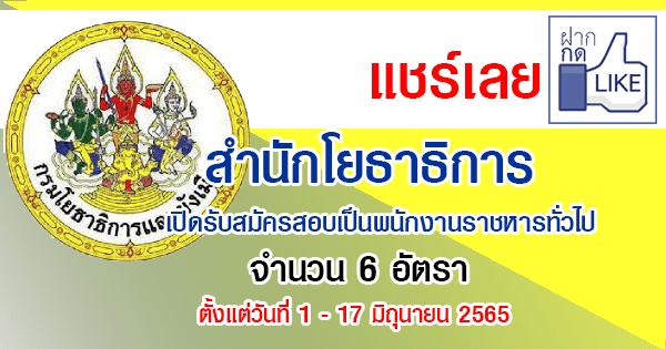 สำนักโยธาธิการ เปิดรับสมัครสอบเป็นพนักงานราชหารทั่วไป 6 อัตรา รับสมัครด้วยตนเอง ตั้งแต่วันที่ 1 – 17 มิถุนายน 2565
