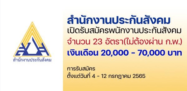 สำนักงานประกันสังคม เปิดรับสมัครสอบเป็นพนักงานประกันสังคม 23 อัตรา สมัครทาง E-mail ตั้งแต่วันที่ 4 – 12 กรกฎาคม 2565