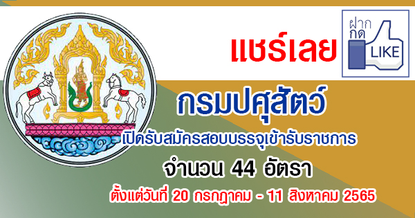 กรมปศุสัตว์ เปิดรับสมัครสอบบรรจุเข้ารับราชการ 44 อัตรา รับสมัครทางอินเทอร์เน็ต ตั้งแต่วันที่ 20 กรกฎาคม – 11 สิงหาคม 2565