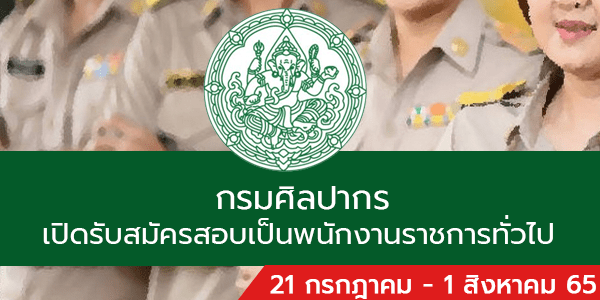 กรมศิลปากร เปิดรับสมัครสอบเป็นพนักงานราชการทั่วไป 31 อัตรา รับสมัครทางอินเทอร์เน็ต ตั้งแต่วันที่ 21 กรกฎาคม – 1 สิงหาคม 2565