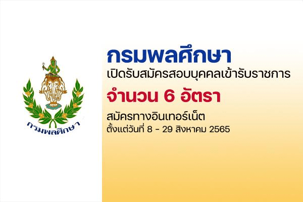 กรมพลศึกษา เปิดรับสมัครสอบบรรจุเข้ารับราชการ 6 อัตรา รับสมัครทางอินเทอร์เน็ต ตั้งแต่วันที่ 8 – 29 สิงหาคม 2565