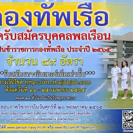 กองทัพเรือ เปิดรับสมัครสอบบรรจุเข้ารับราชการ 47 อัตรา รับสมัครทางอินเทอร์เน็ต ตั้งแต่วันที่ 11 – 24 เมษายน 2565