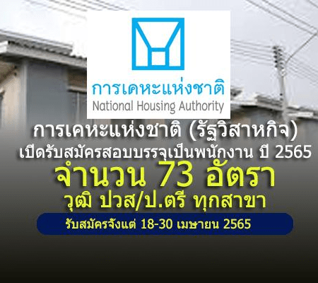 การเคหะแห่งชาติ เปิดรับสมัครสอบบรรจุพนักงาน 73 อัตรา สมัครทางอินเทอร์เน็ต ตั้งแต่วันที่ 18 – 30 เมษายน 2565