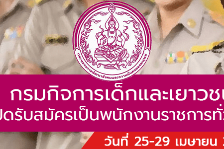 กรมกิจการเด็กและเยาวชน เปิดรับสมัครเป็นพนักงานราชการทั่วไป จำนวน 15 อัตรา รับสมัครทางไปรษณีย์ด่วนพิเศษ (EMS) ตั้งแต่วันที่ 25-29 เมษายน 2565