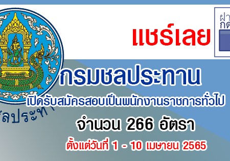 กรมชลประทาน เปิดรับสมัครสอบเป็นพนักงานราชการทั่วไป 266 อัตรา รับสมัครทางอินเทอร์เน็ต ตั้งแต่วันที่ 1 – 10 เมษายน 2565
