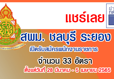 สพม. ชลบุรี ระยอง เปิดรับสมัครพนักงานราชการ ตำแหน่งครูผู้สอน 33 อัตรา รับสมัครด้วยตนเอง ตั้งแต่วันที่ 28 มีนาคม – 5 เมษายน 2565