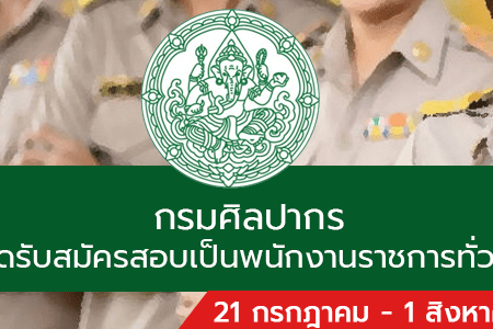 กรมศิลปากร เปิดรับสมัครสอบเป็นพนักงานราชการทั่วไป 31 อัตรา รับสมัครทางอินเทอร์เน็ต ตั้งแต่วันที่ 21 กรกฎาคม – 1 สิงหาคม 2565
