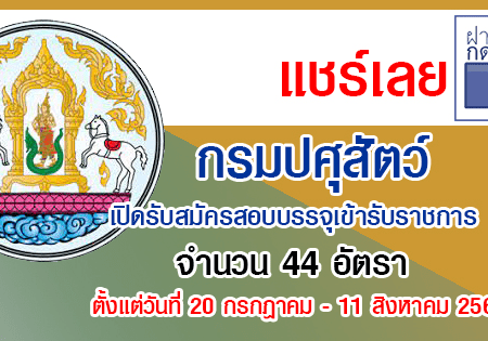 กรมปศุสัตว์ เปิดรับสมัครสอบบรรจุเข้ารับราชการ 44 อัตรา รับสมัครทางอินเทอร์เน็ต ตั้งแต่วันที่ 20 กรกฎาคม – 11 สิงหาคม 2565