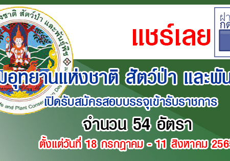 กรมอุทยานแห่งชาติ สัตว์ป่า และพันธุ์พืช เปิดรับสมัครสอบบรรจุเข้ารับราชการ 54 อัตรา รับสมัครทางอินเทอร์เน็ต ตั้งแต่วันที่ 18 กรกฎาคม – 11 สิงหาคม 2565