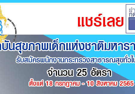 สถาบันสุขภาพเด็กแห่งชาติมหาราชินี รับสมัครพนักงานกระทรวงสาธารณสุขทั่วไป 25 อัตรา รับสมัครด้วยตนเอง ตั้งแต่ 18 กรกฎาคม – 10 สิงหาคม 2565