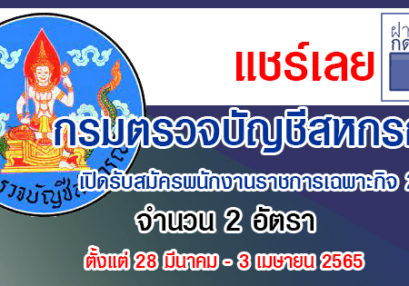 กรมตรวจบัญชีสหกรณ์ เปิดรับสมัครพนักงานราชการเฉพาะกิจ 2 อัตรา รับสมัครทางอินเทอร์เน็ต ตั้งแต่ 28 มีนาคม – 3 เมษายน 2565