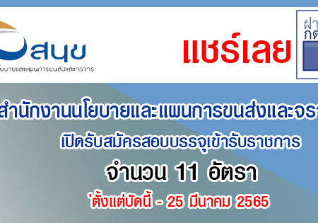 สำนักงานนโยบายและแผนการขนส่งและจราจร เปิดรับสมัครสอบบรรจุเข้ารับราชการ 11 อัตรา รับสมัครทางอินเทอร์เน็ต ตั้งแต่บัดนี้ – 25 มีนาคม 2565