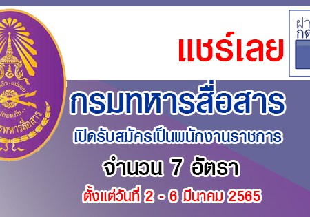 กรมการทหารสื่อสาร เปิดรับสมัครเป็นพนักงานราชการ 76 อัตรา รับสมัครทางอินเตอร์เน็ต ตั้งแต่วันที่ 2 – 6 มีนาคม 2565