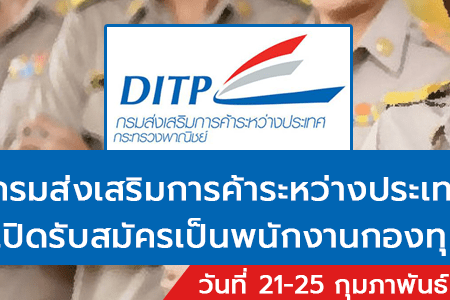 กรมส่งเสริมการค้าระหว่างประเทศ เปิดรับสมัครเป็นพนักงานกองทุน 16 อัตรา รับสมัครทางอินเทอร์เน็ต ตั้งแต่วันที่ 21-25 กุมภาพันธ์ 2565