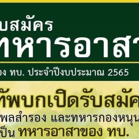 กองทัพบก เปิดรับสมัครสอบเข้าเป็นทหารอาสาของ ทบ. 80 อัตรา รับสมัครด้วยตนเอง ตั้งแต่บัดนี้จนถึง 7 กุมภาพันธ์ 2565
