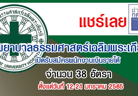 โรงพยาบาลธรรมศาสตร์เฉลิมพระเกียรติ รับสมัครพนักงานเงินรายได้ 38 อัตรา รับสมัครทางอินเทอร์เน็ต ตั้งแต่วันที่ 12-21 มกราคม 2565