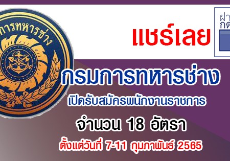 กรมการทหารช่าง เปิดรับสมัครพนักงานราชการ 18 อัตรา รับสมัครทางอินเทอร์เน็ต ตั้งแต่วันที่ 7-11 กุมภาพันธ์ 2565