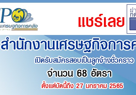 สำนักงานเศรษฐกิจการคลัง เปิดรับสมัครสอบเป็นลูกจ้างชั่วคราว 68 อัตรา รับสมัครทางอินเทอร์เน็ต ตั้งแต่บัดนี้ถึง 27 มกราคม 2565
