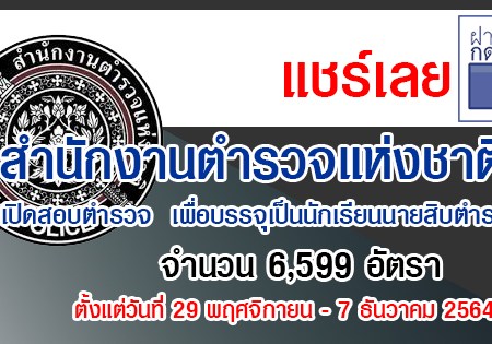 เปิดสอบตำรวจ ประจำปี 2564 เพื่อบรรจุเป็นนักเรียนนายสิบตำรวจ (นสต.) จำนวน 6,599 อัตรา รับสมัครทางอินเทอร์เน็ต ตั้งแต่วันที่ 29 พฤศจิกายน – 7 ธันวาคม 2564