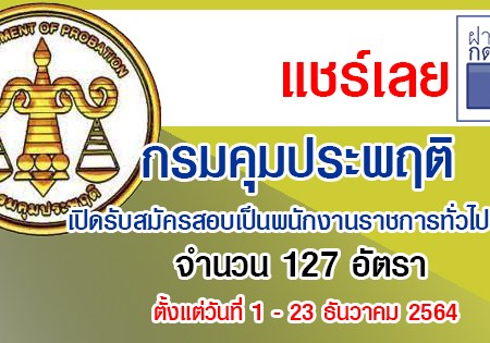 กรมคุมประพฤติ เปิดรับสมัครสอบเป็นพนักงานราชการทั่วไป 127 อัตรา รับสมัครทางอินเทอร์เน็ต ตั้งแต่วันที่ 1 – 23 ธันวาคม 2564