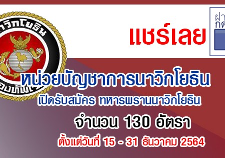หน่วยบัญชาการนาวิกโยธิน เปิดรับสมัครพลเรือนเป็น อาสาสมัครทหารพรานนาวิกโยธิน 130 อัตรา รับสมัครทางอินเทอร์เน็ต ตั้งแต่วันที่ 15 – 31 ธันวาคม 2564