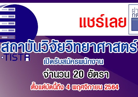 สถาบันวิจัยวิทยาศาสตร์และเทคโนโลยีแห่งประเทศไทย เปิดรับสมัครพนักงาน 20 อัตรา รับสมัครทางอินเทอร์เน็ต ตั้งแต่บัดนี้ถึง 4 พฤศจิกายน 2564