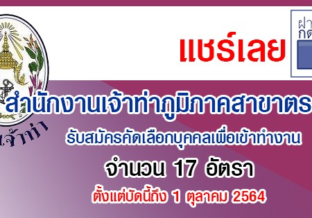 สำนักงานเจ้าท่าภูมิภาคสาขาตราด รับสมัครคัดเลือกบุคคลเพื่อเข้าทำงาน 17 อัตรา รับสมัครด้วยตนเอง ตั้งแต่บัดนี้ถึง 1 ตุลาคม 2564